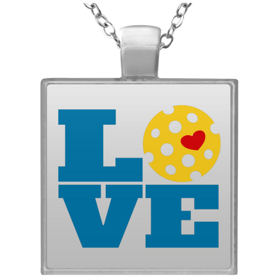 Pickleball Love Pendant | Square Silver Plated Necklace | 20" Chain